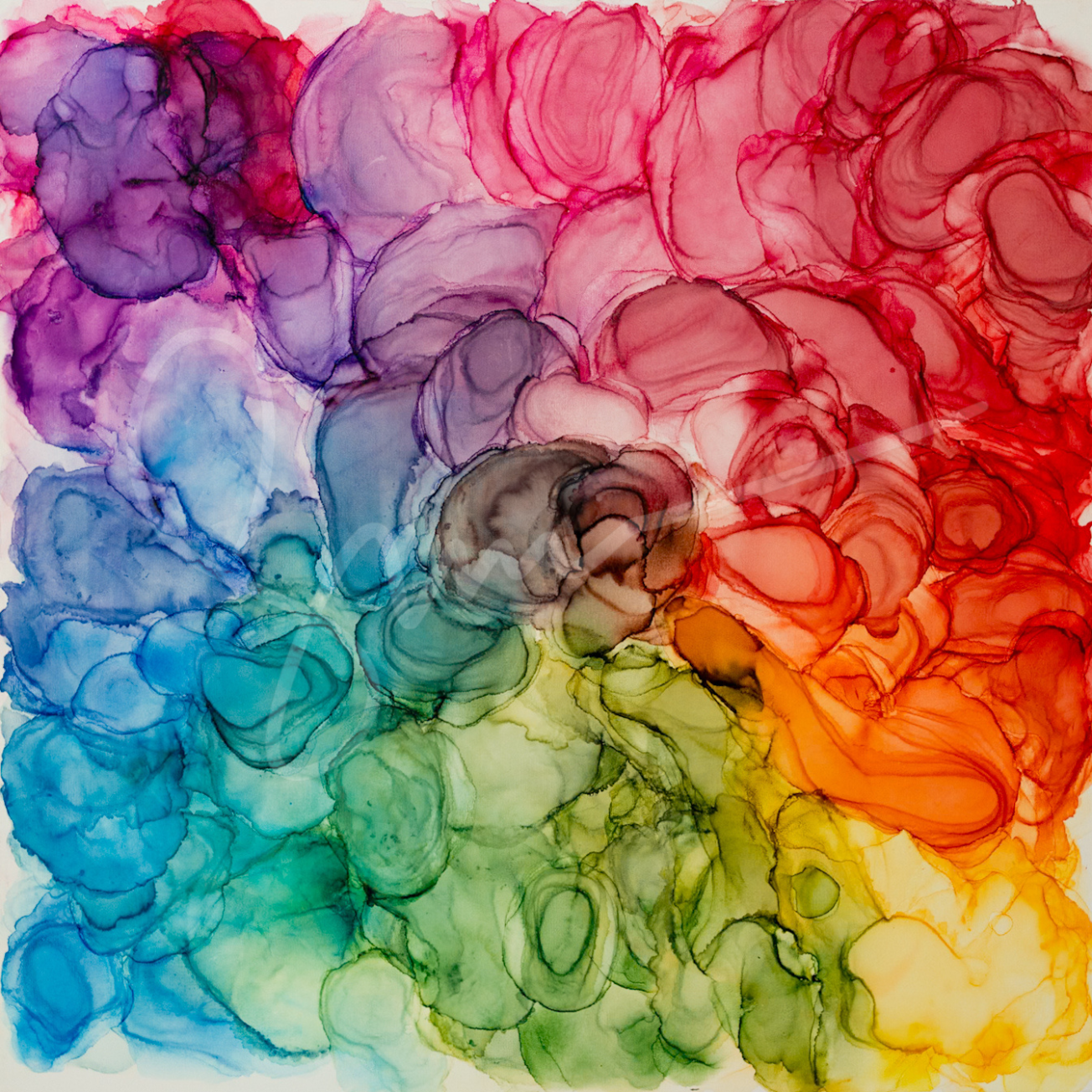 Color unfolds like a living pulse — violet dissolving into blue, blue into green, green into gold and rose. Each translucent layer feels suspended in air, as if painted by wind or by the slow exhale of time itself.
